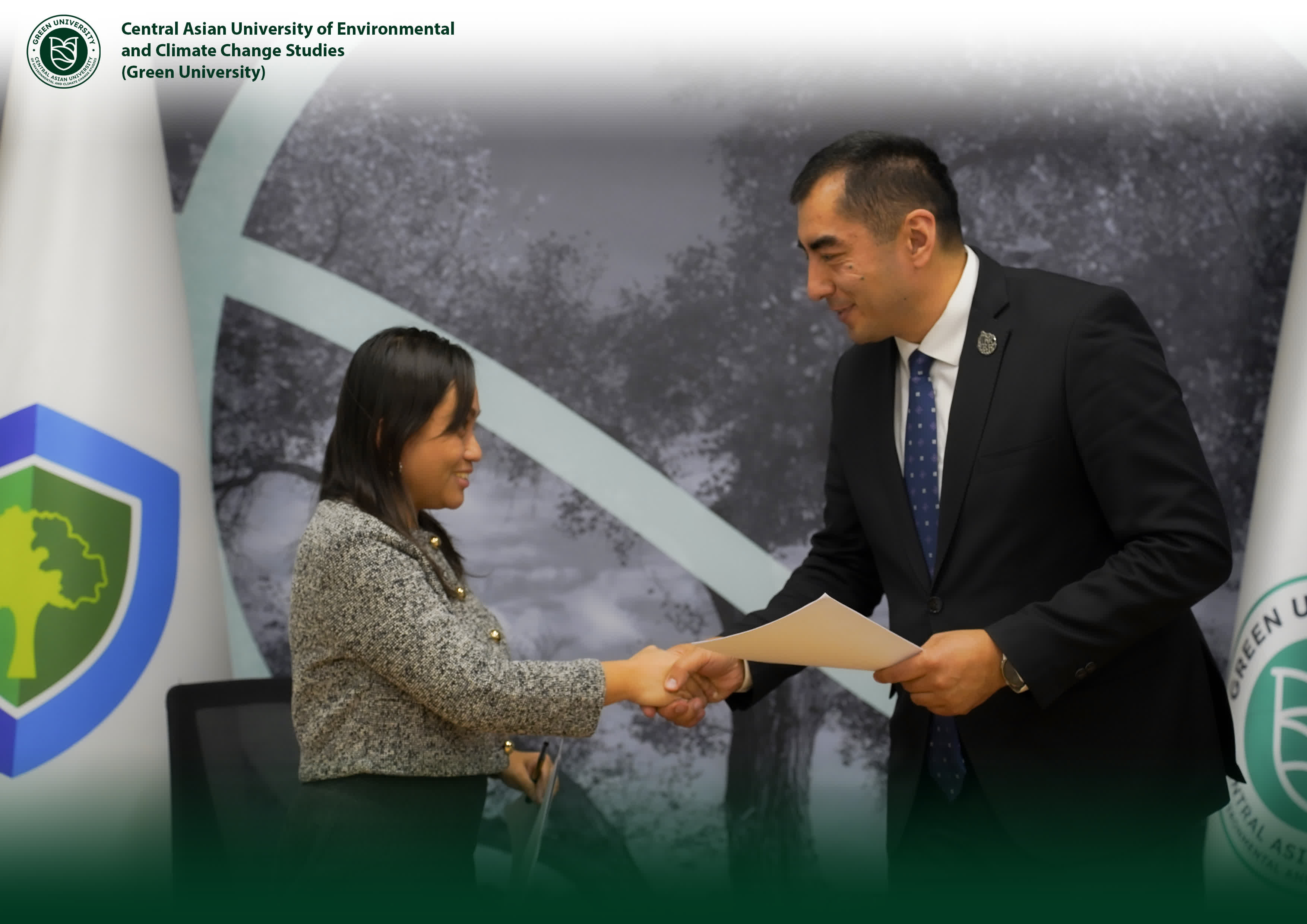 The Central Asian University of Environmental and Climate Change Studies (Green University) successfully held a bilateral meeting with the Clean Air Initiative for Asian Cities (Clean Air Asia), culminating in the official signing of a Memorandum of Understanding aimed at strengthening collaboration in environmental sustainability, air quality improvement, and climate change mitigation.